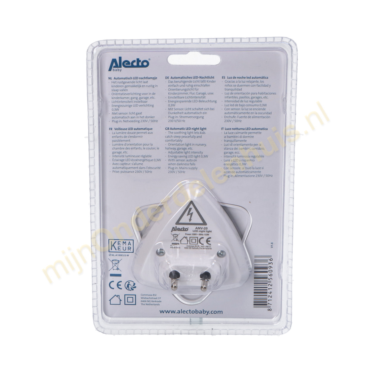Alecto Nachtlampje voorzien van LED techniek Zeer lange levensduur en energiezuinig (0,26W) Voorzien van draaibare voorkant zodat lichtintensiteit instelbaar is Schakelt automatisch aan en uit al naar gelang de omgeving donker of lichter is geworden Voeding: 230V/50Hz.