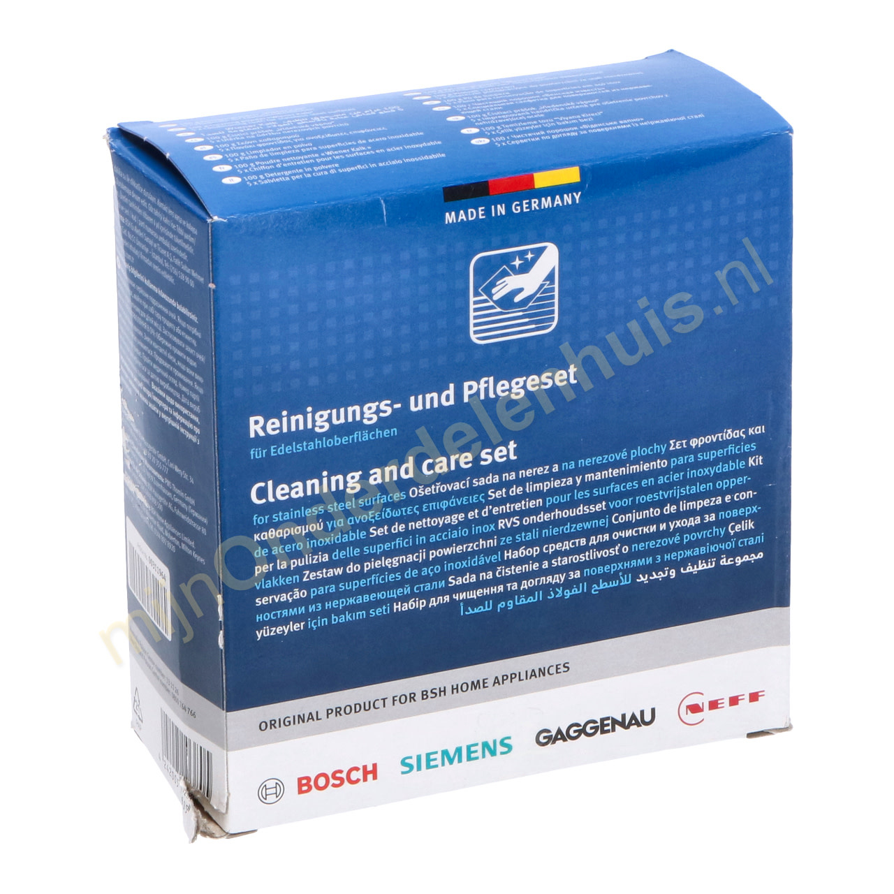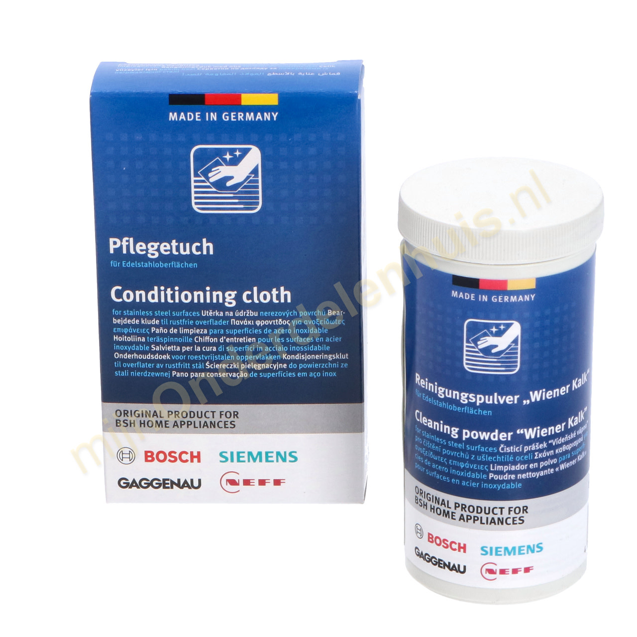 Apart verkrijgbaar: reinigingspoeder (artikelnummer: 00311946) en verzorgingsdoeken (artikelnummer: 00312007)