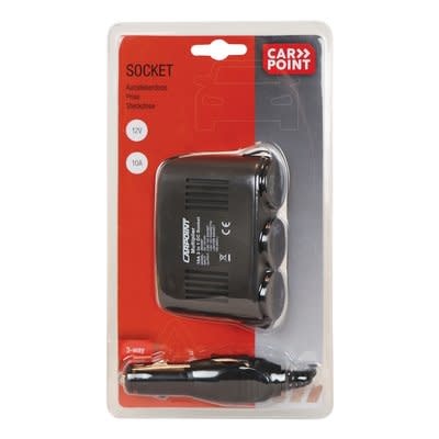 Carpoint 3-weg stekkerdoos met drie 12 Volt sigarettenaansteker aansluitingen. Eén van deze aansluitingen kan ook gebruikt worden voor het aansteken van de sigaretten aansteker. Met standaard 21mm sigarettenaansteker plug en LED indicatie. Met plak en schroefbevestiging, opvul bus en vervangbare 10 Ampère steekzekering.
