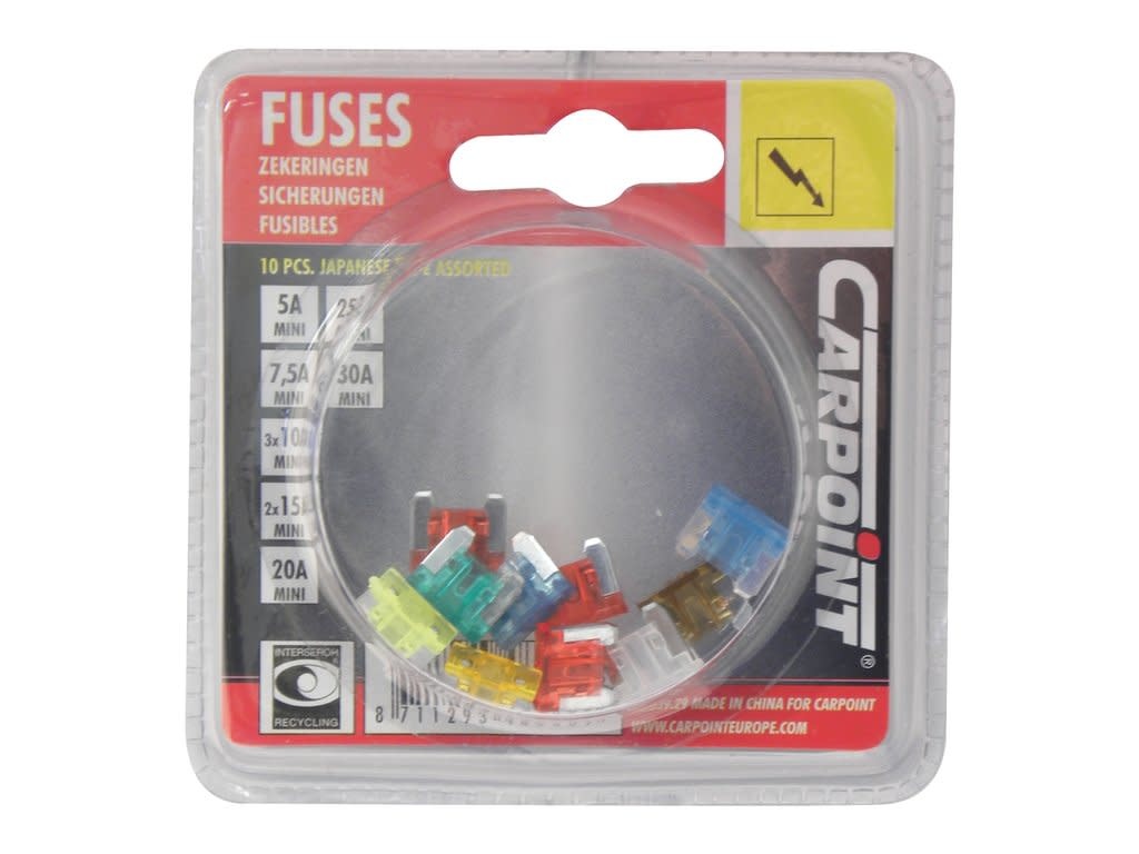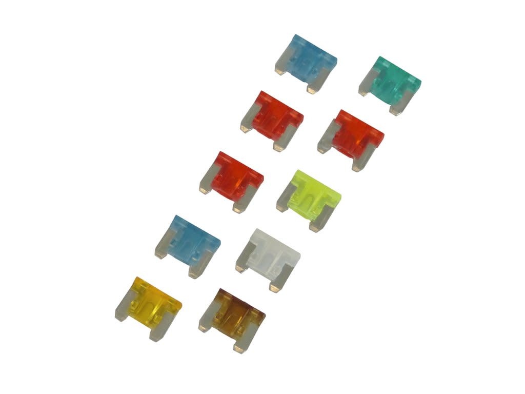 - Assortiment verpakking met tien low profile mini steekzekeringen.
