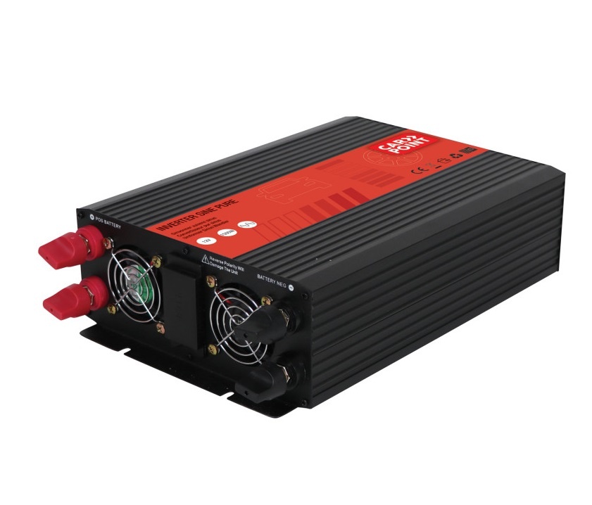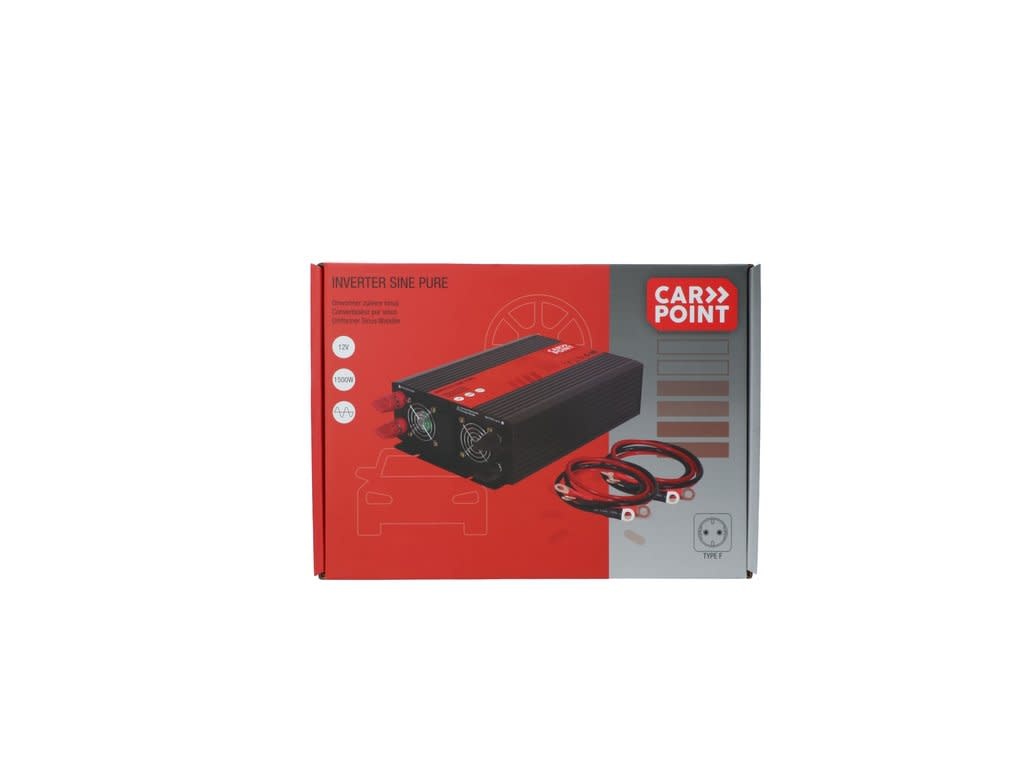 Carpoint zuivere sinus omvormer 12V>230V met een continu vermogen van 300 Watt en een piekvermogen 600 Watt. De zuivere sinus omvormer levert een constante elektrische spanning van 230 Volt waarmee je zonder problemen en zonder voorbehoud alle elektrische apparaten op kan aansluiten. Beveiliging tegen onderspanning, overspanning, hoge temperatuur en overbelasting. Beveiligd tegen omgekeerde polariteit door zekering. Indicatoren voor spanning en storing en ingebouwde zoemer voor foutmeldingen. Schokbestendig en temperatuur/belastbaar geregelde koelventilator. Afmeting 150 x 130 x 53mm.