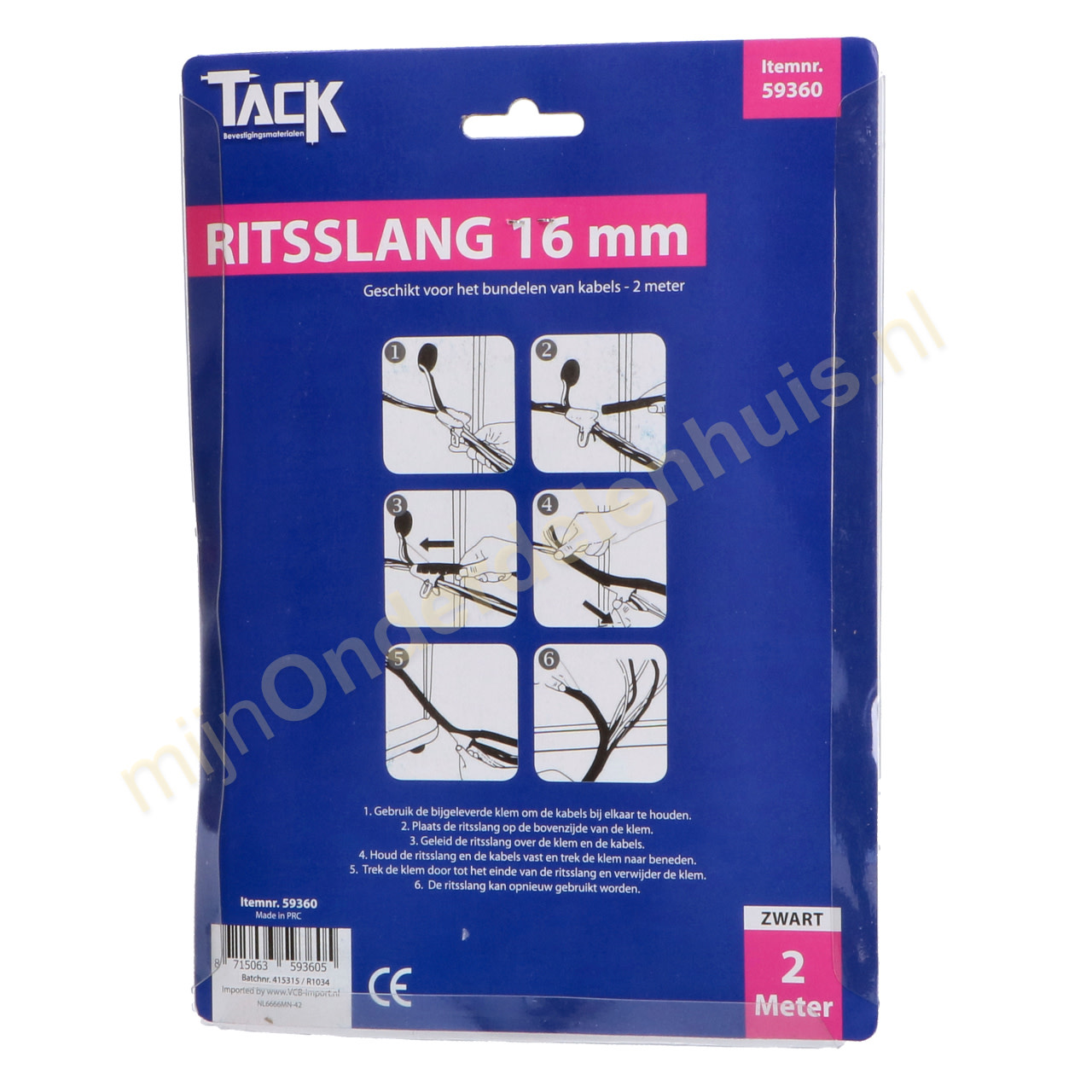 Specificaties van Tack universele ritsslang voor kabels 16mm 2m zwart