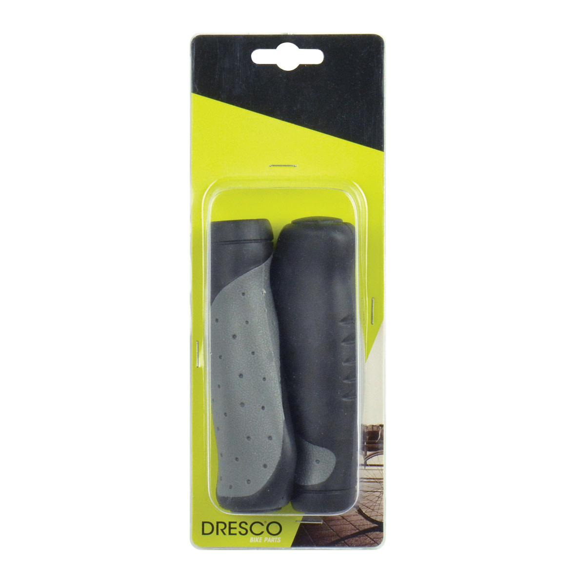 Dresco comfortabele ergonomisch gevormde zwart/grijze kunststof handvatten Ergo Grip. Door de ergonomische peddelvormgeving wordt de druk optimaal verdeeld en geeft hierdoor extra steun. De handvatten hebben een lengte van 13,6 cm en passen op standaard sturen met een diameter van 22,2mm. Worden per 2 stuks geleverd.