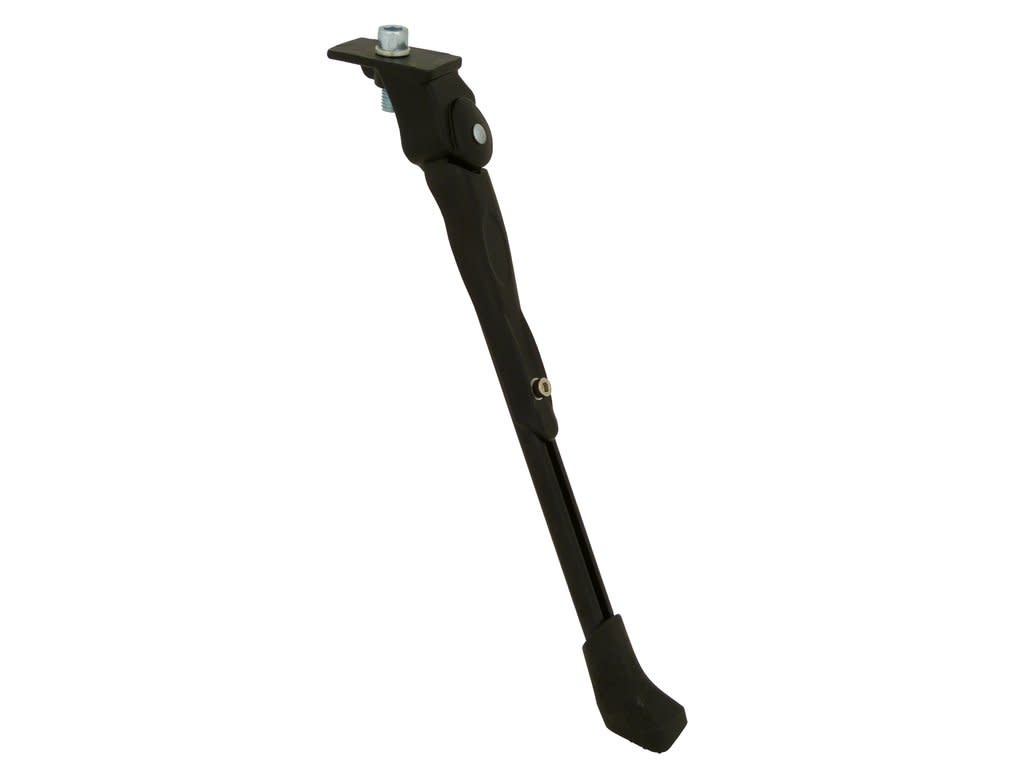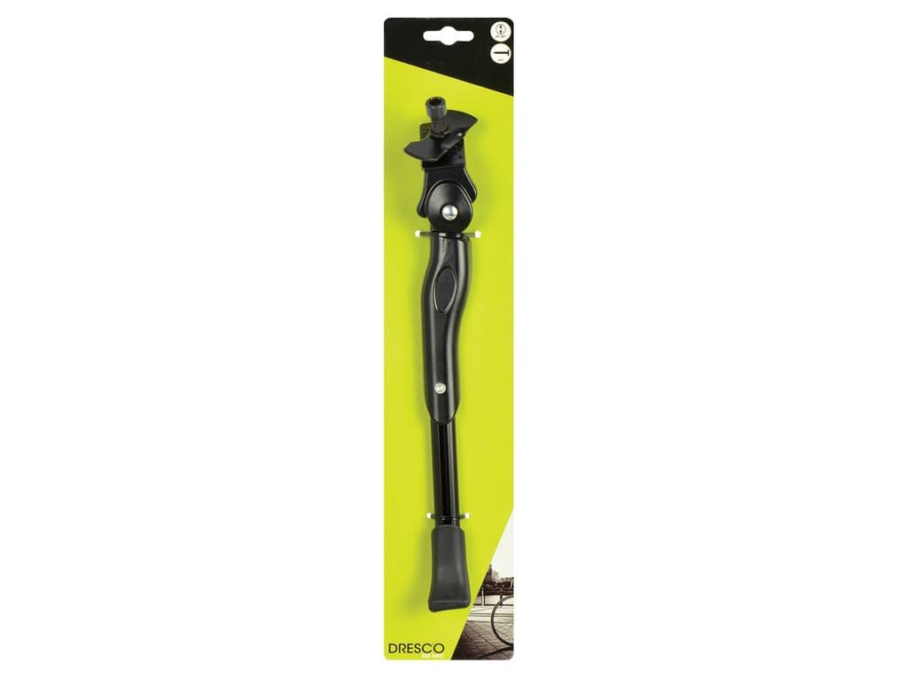 Dresco verstelbare fietsstandaard geschikt voor fietsen met een wielmaat van 24 tot en met 28 inch. De fietsstandaard is eenvoudig op lengte te maken door de inbus bout. De standaard kan worden gemonteerd met de meegeleverde inbusbout op de bestaande montageplaat met een breedte van 28mm, of met de meegeleverde bevestiging tussen de liggende achtervorken.