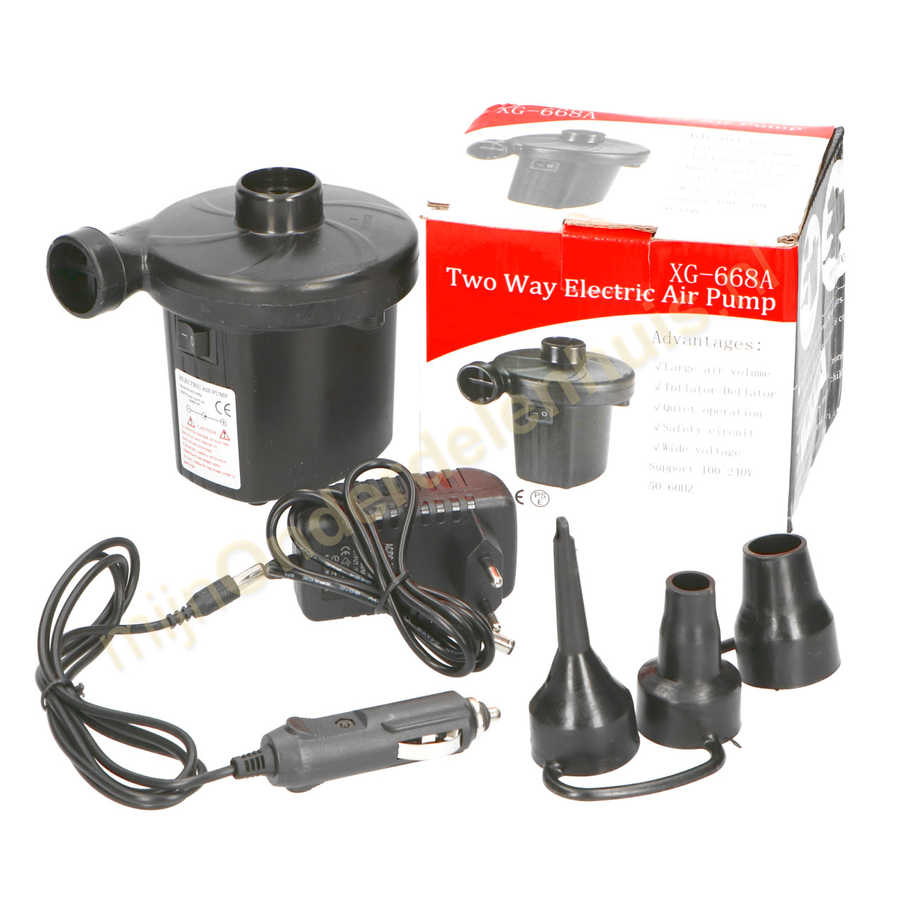 Pomp je luchtbed, boot, zwembad, matras, stoel, bank, eiland, koeler, bar etc op met een druk op de knop, 12V én 100 / 240V geschikt.
