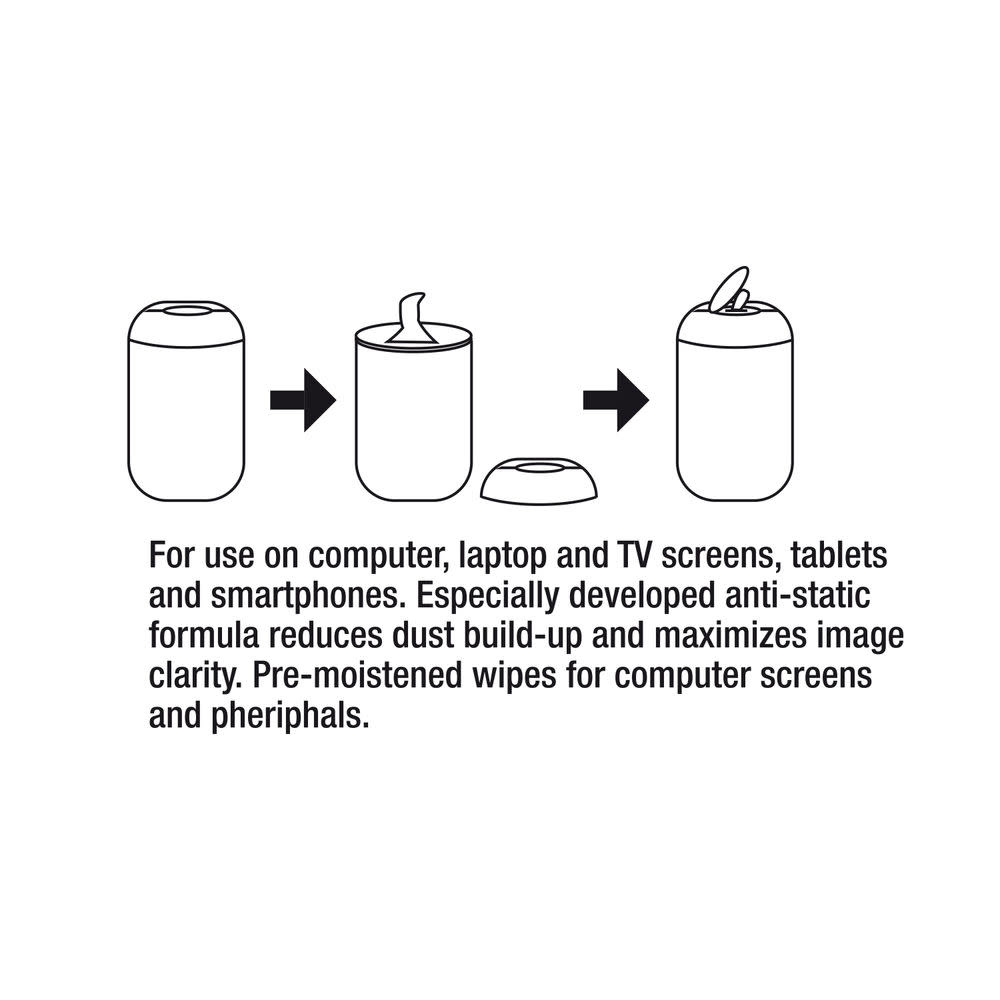 Hersluitbare doseerbus met 100 vochtige doekjes voor televisies, beeldschermen, monitors, tablets, smartphones, etc.