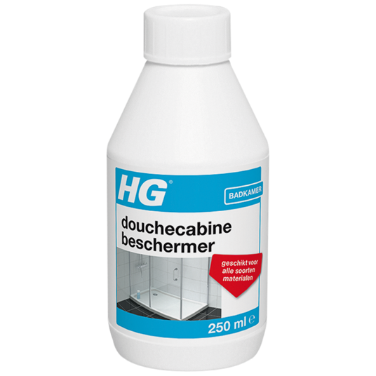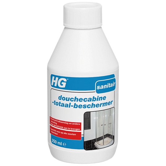 HG douchecabine totaal beschermer beschermt alle materialen in en aan de douchecabine tegen kalkaanslag en vervuiling. Deze vervuiling ontstaat door zeepresten, badolie, huidvetten e.d. Ga kalkaanslag en vervuiling tegen met de HG douchecabine totaal beschermer!