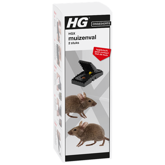 HG Heeft u last van een muizenplaag? HGX muizenval is een effectieve manier om muizen te vangen en zo van een muizenplaag af te komen. Daarnaast is onze muizenval hygiënisch in gebruik. Door de speciale hendel constructie kan de dode muis in de vuilnisbak gegooid worden zonder hem te hoeven aanraken.