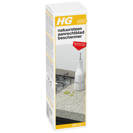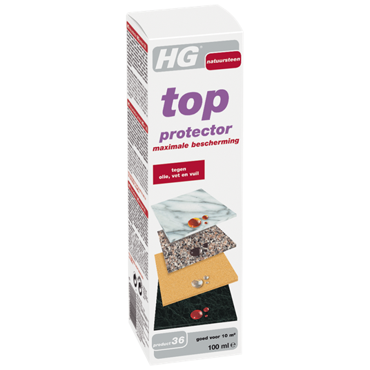 HG top protector (product 36) vormt een absoluut kleurloze en onzichtbare bescherming voor marmer, kalksteen, zandsteen, graniet en dergelijke. Het beschermt met name tegen (spijs)oliën, plantaardige en dierlijke vetten en nog vele andere soorten vervuiling. Zonder deze bescherming kan de vervuiling tot diep in de poriën van het materiaal dringen en vervolgens moeilijk tot zelfs onmogelijk te verwijderen vlekken veroorzaken.
