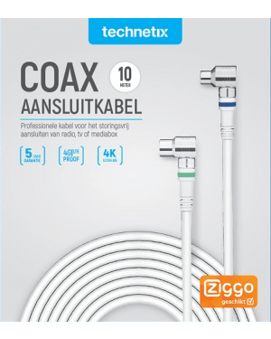 Technetix aansluitkabel Coax Aansluitkabel, 4G Proof, Ziggo geschikt.