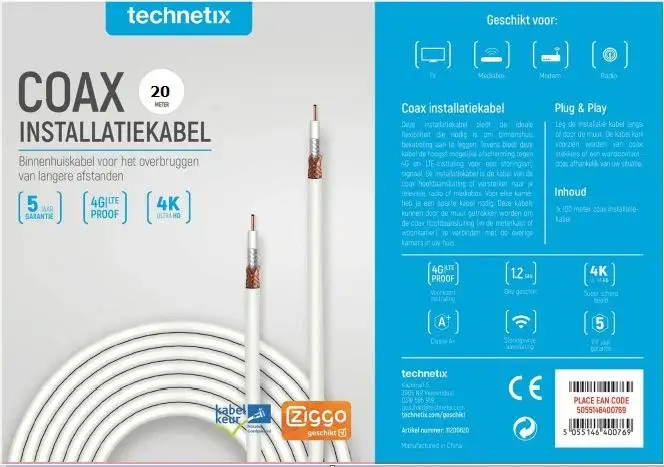 Coax Installatiekabel, 4G Proof, Ziggo geschikt.