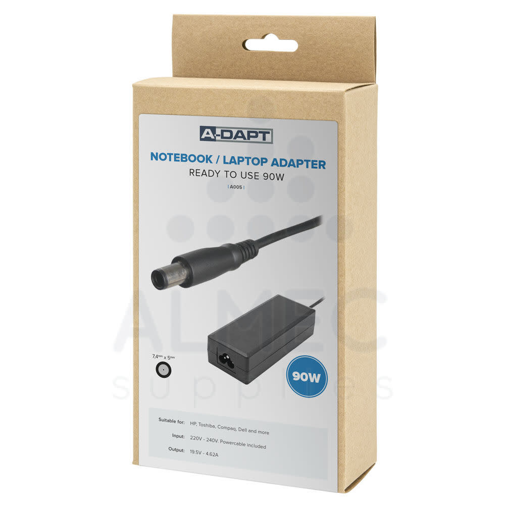 Laptopadapter 19.5V 4,62A 7.4x5.0mm met binnenpin A005