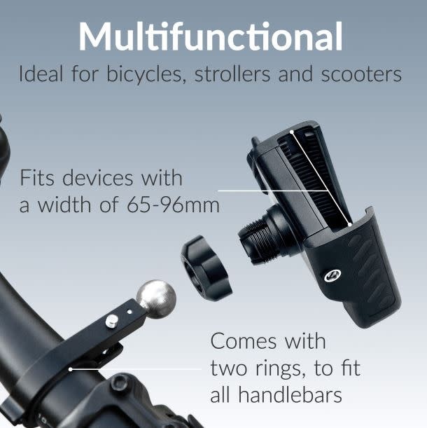 Deze universele houder maakt een stabiele en trillingsdempende bevestiging mogelijk van smartphones met een schermgrootte van 4,5 tot 7 inch. Het Quick-Lock systeem maakt bevestiging en ontgrendeling met één hand mogelijk, terwijl de variabele klembreedte van 65 - 92 mm ook apparaten met een beschermhoes veilig vasthoudt.
