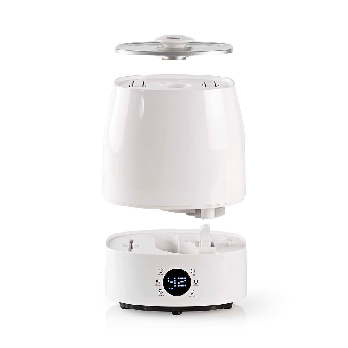 Een LED-scherm geeft de vochtigheidsgraad in de kamer nauwkeurig weer en kan worden gebruikt om je optimale instellingen te programmeren. Met de 12-uurs timerregeling kun je de luchtbevochtiger zo instellen dat deze na een bepaalde tijd automatisch wordt uitgeschakeld.