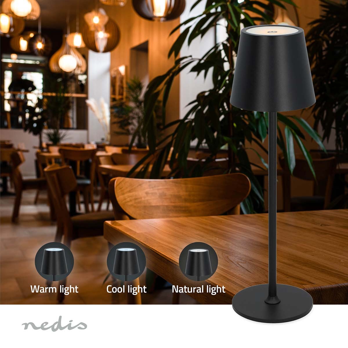 De Nedis LED-tafellamp is ontworpen voor veelzijdigheid en wordt geleverd met IP44-bescherming, waardoor hij geschikt is voor gebruik buitenshuis. Breng charme op uw terras, terras of camping met deze draagbare en weerbestendige verlichtingsoplossing.
