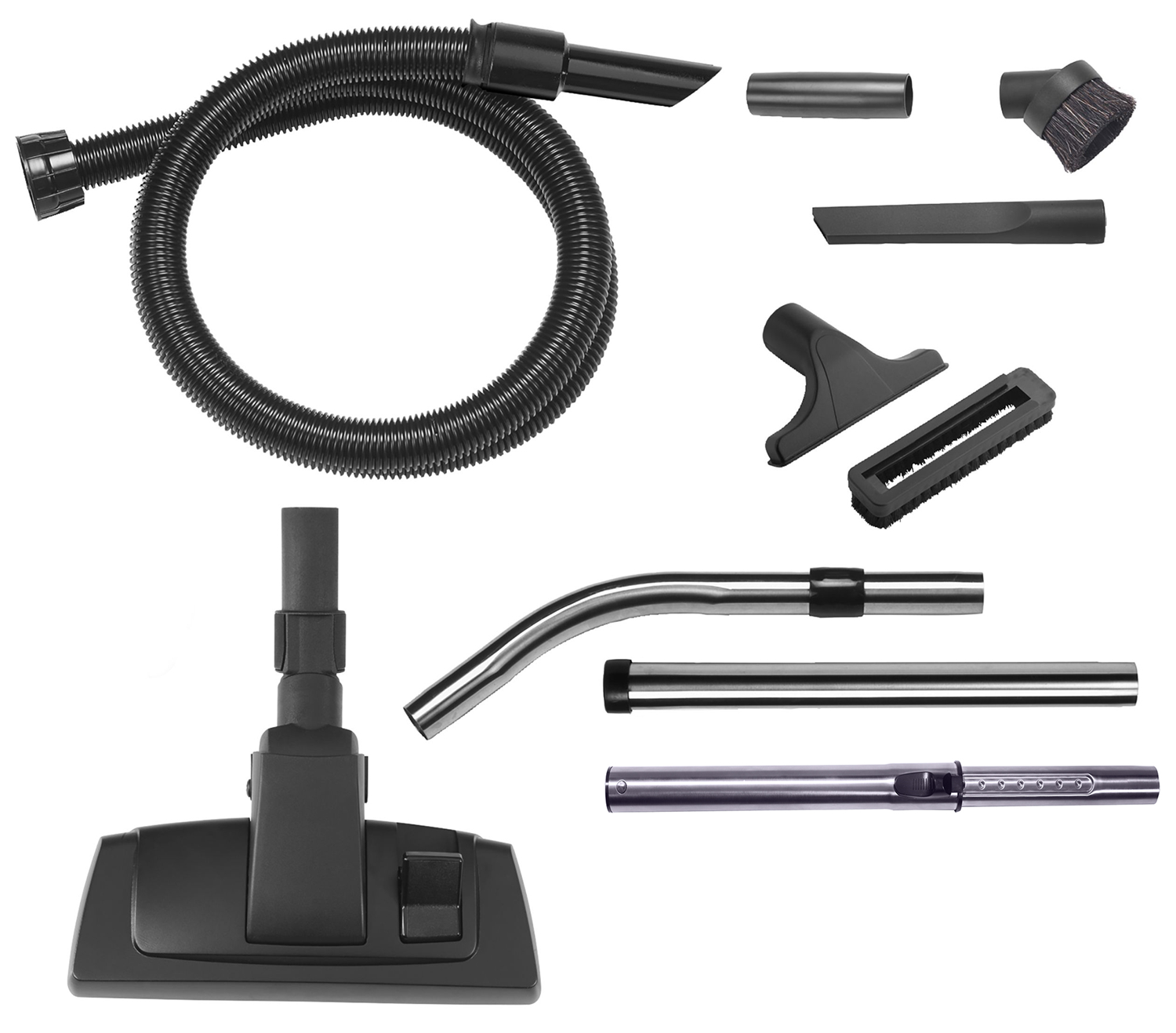 - Complete accessoirekit AST1 bestaande uit: telescopische zuigbuis, 3-delig RVS, Hi-Pro combizuigmond 290 mm met comfortwiel, 2.4 m FloMax zuigslang en 5-delige accessoirekit met FreeFlo zuigmond.