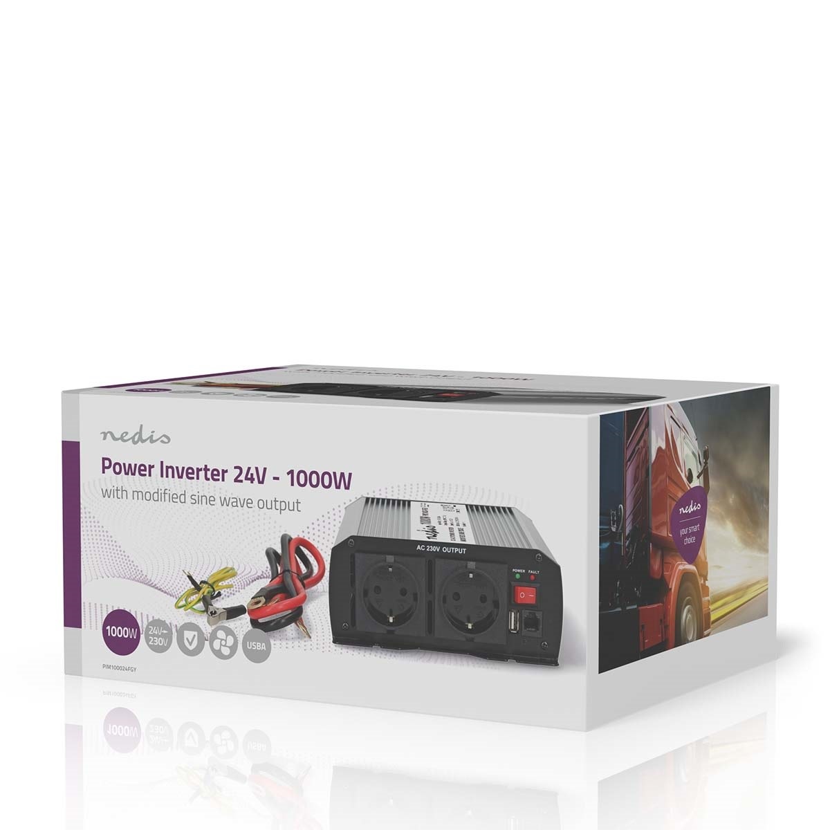 Universele omvormer om 230V AC-apparatuur, zoals een TV, magnetron of koffiezetapparaat van stroom te voorzien in vrachtwagen, auto, boot, etc.