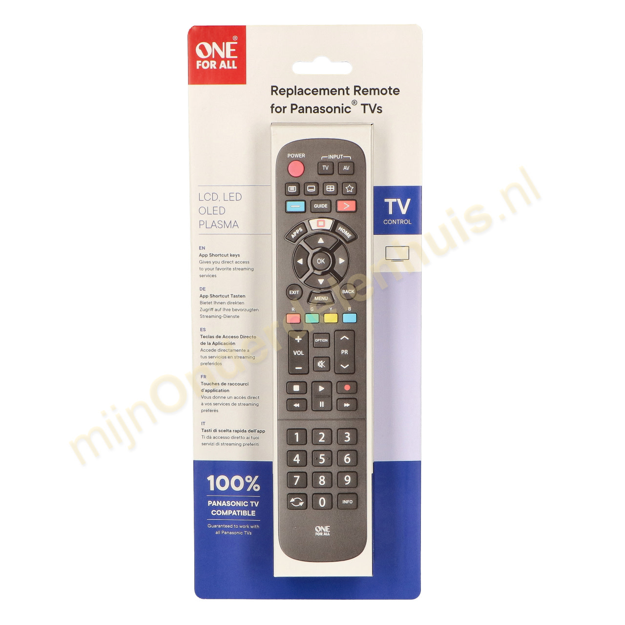 Vervang een zoekgeraakte of kapotte Panasonic afstandsbediening met deze voorgeprogrammeerde vervangende TV-afstandsbediening. De afstandsbediening is geschikt voor iedere Panasonic televisie. Dankzij een uitgebreide ingebouwde codedatabase, beschikt hij over iedere functie die de originele uitvoering ook heeft. De vervangende afstandsbediening is eenvoudig in gebruik, omdat programmeren niet nodig is. U hoeft er alleen batterijen in te stoppen.