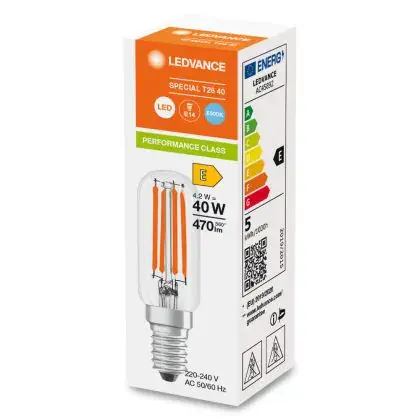 Ledvance LED lamp met goede lichtverdeling in alle richtingen. Geschikt voor klein designarmatuur: huishoudelijke koelkasten, afzuigkappen, naaimachines, etc.