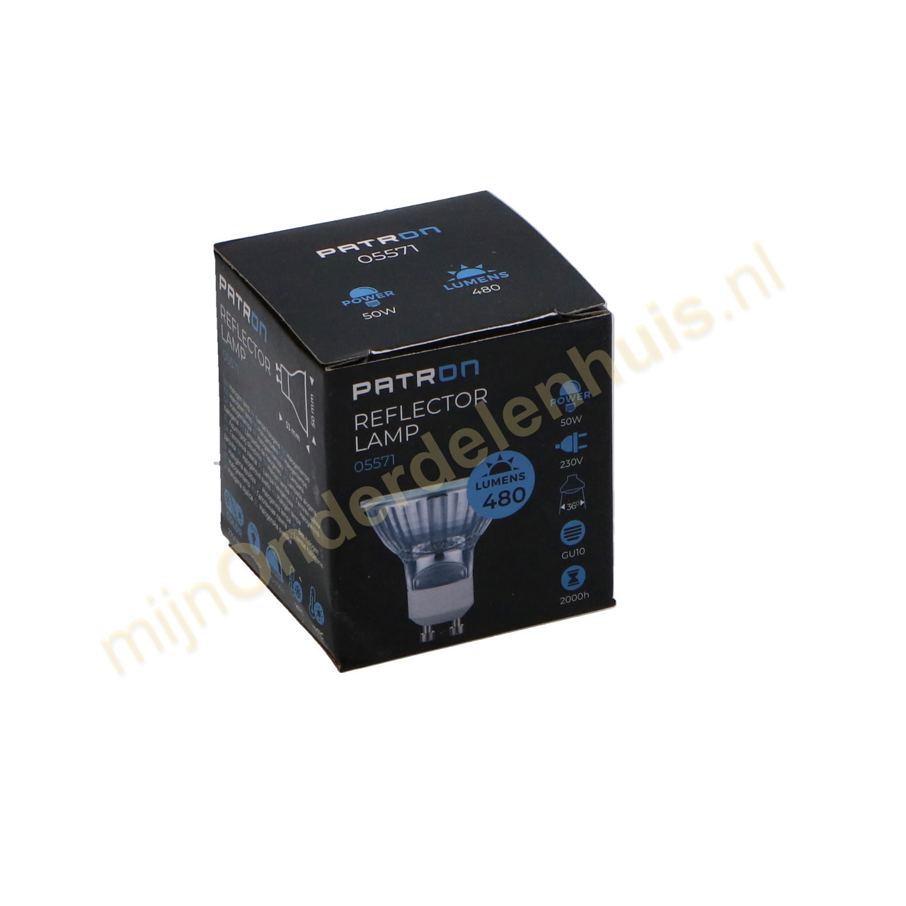 Specificaties van Patron halogeenlamp reflector 50W GU10 230V 36º 480lm
