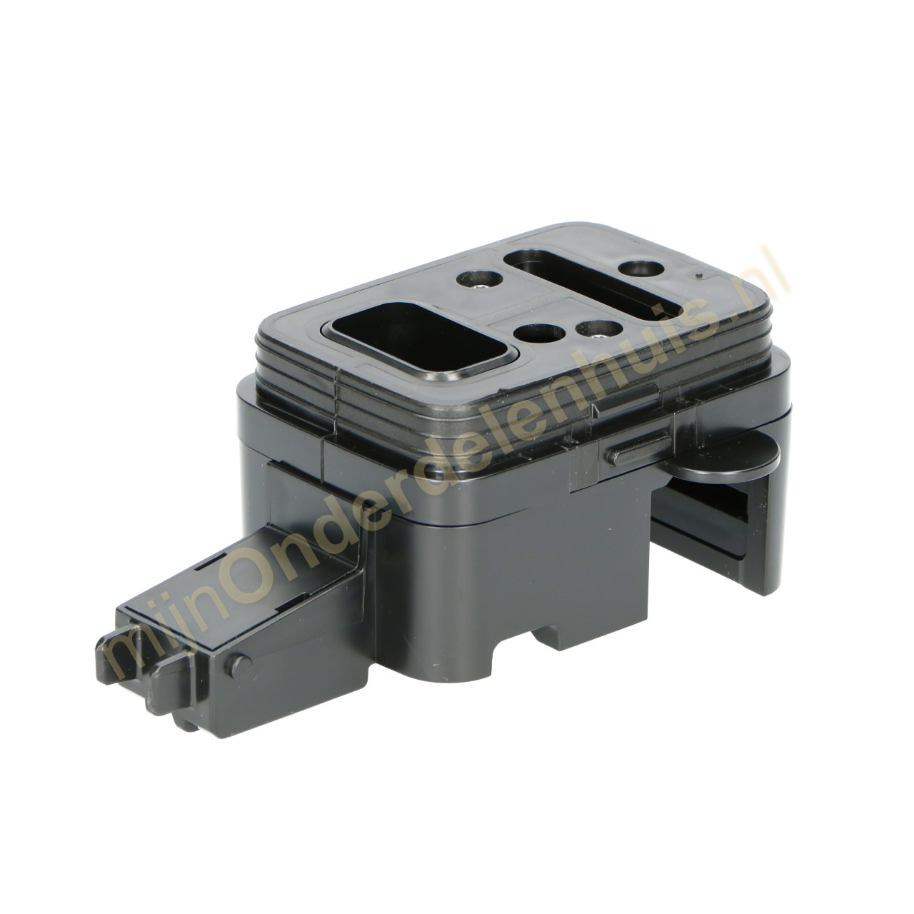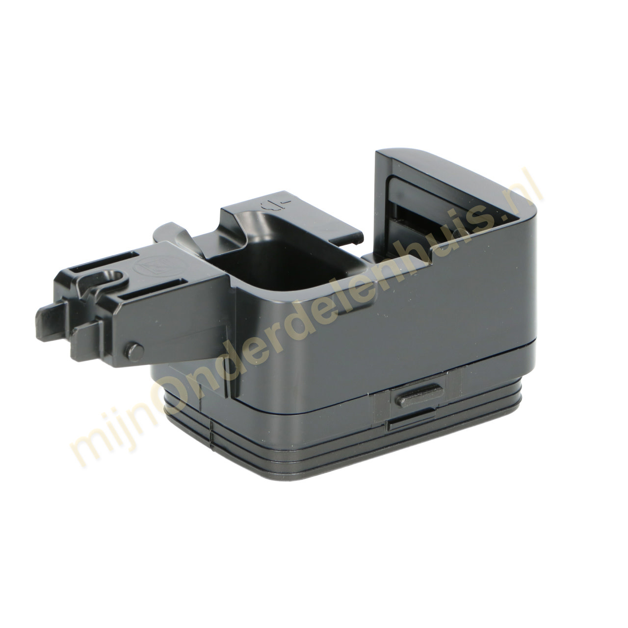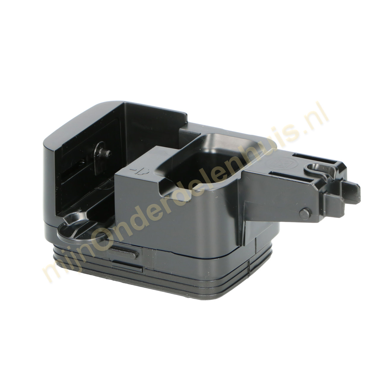 Indien het niet lukt om de schenkinrichting in de bovenkant van de kan te plaatsen, komt dat doordat de pin in de verkeerde stand (b) staat. Voordat de schenkinrichting geplaatst kan worden moet de pin handmatig in de juiste stand (a) geduwd worden.
