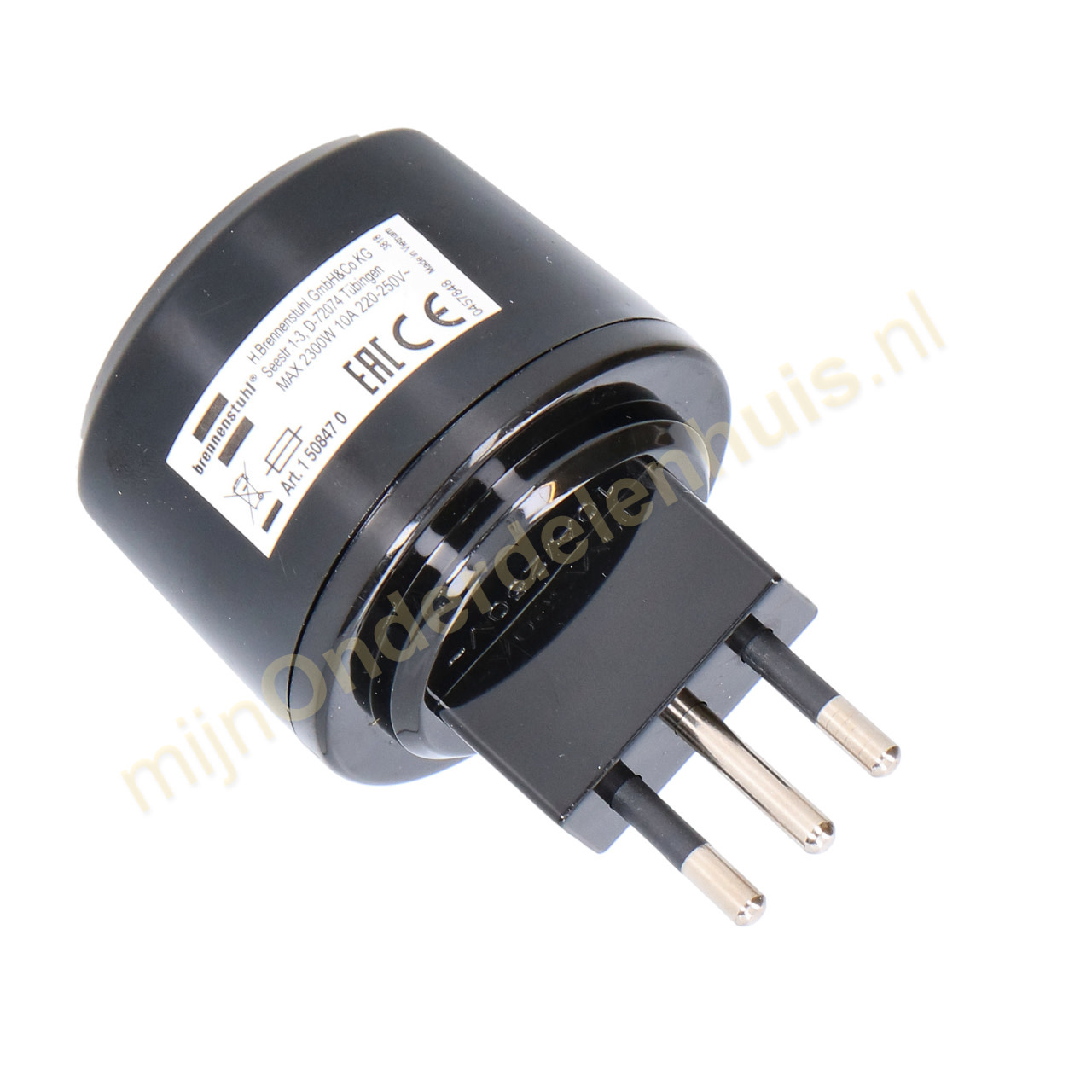 Reisstekker met randaarde, van Nederlandse stekker naar Italiaans stopcontact.