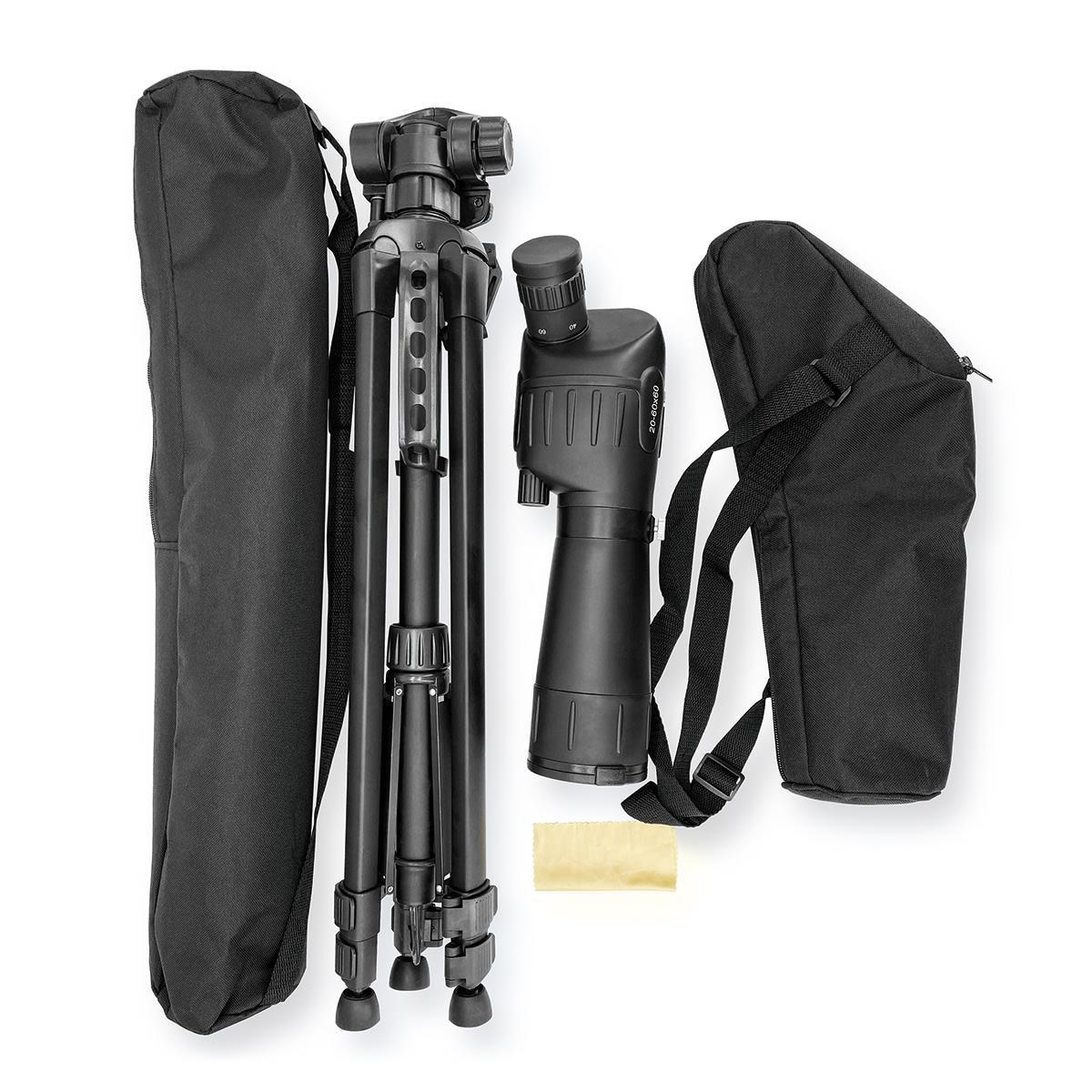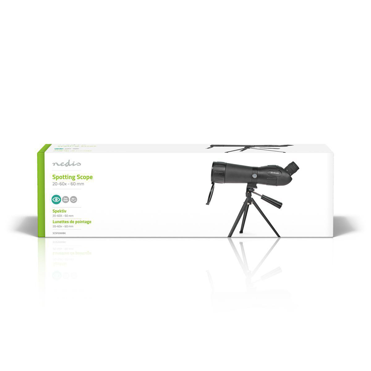• De spotting-kijker heeft een vergrotingsfactor van 20 tot 60x. De vergrotingsfactor is het getal dat aangeeft hoeveel een object wordt vergroot door de lens. Des te hoger het getal, des te meer de vergroting.