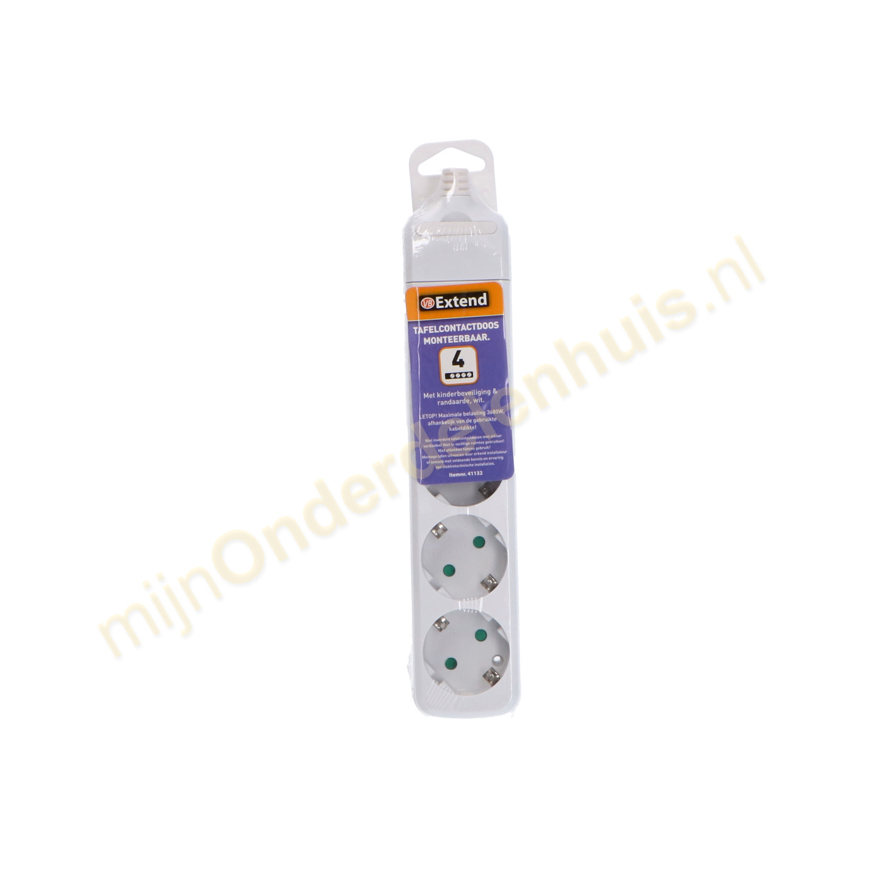 Universele 4-voudige tafelcontactdoos met randaarde. Zonder snoer, makkelijk monteerbaar.