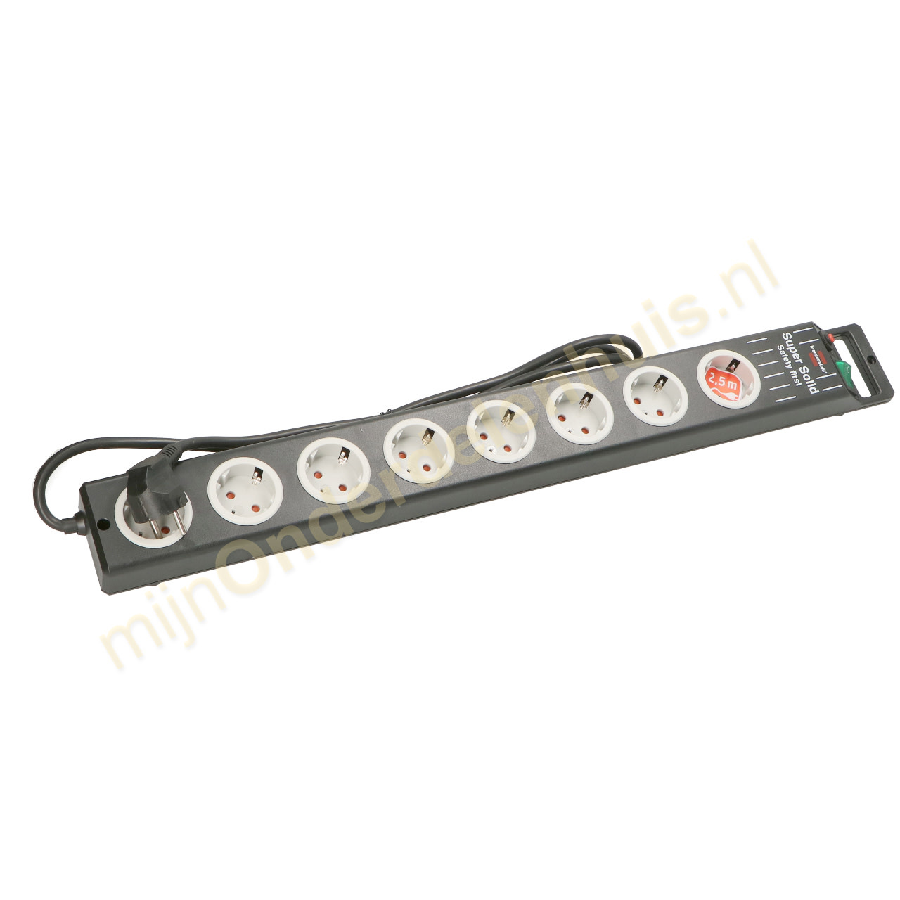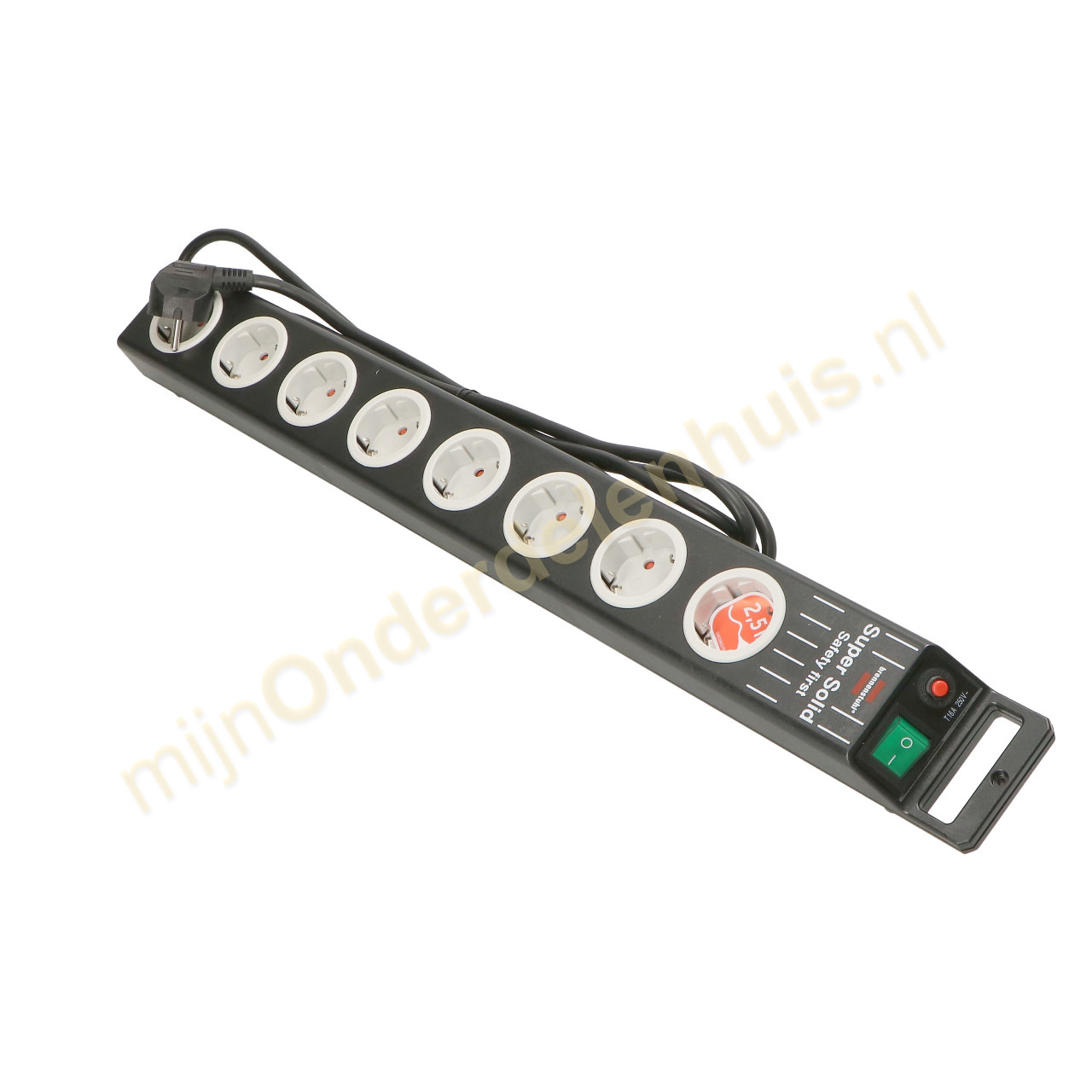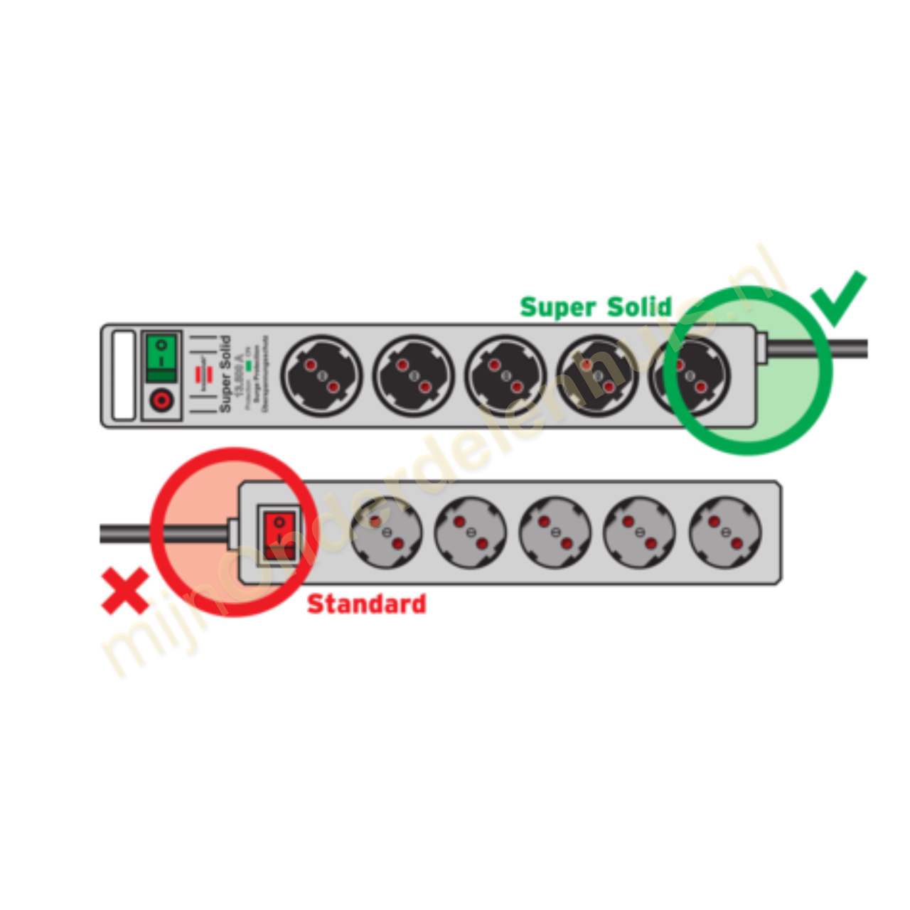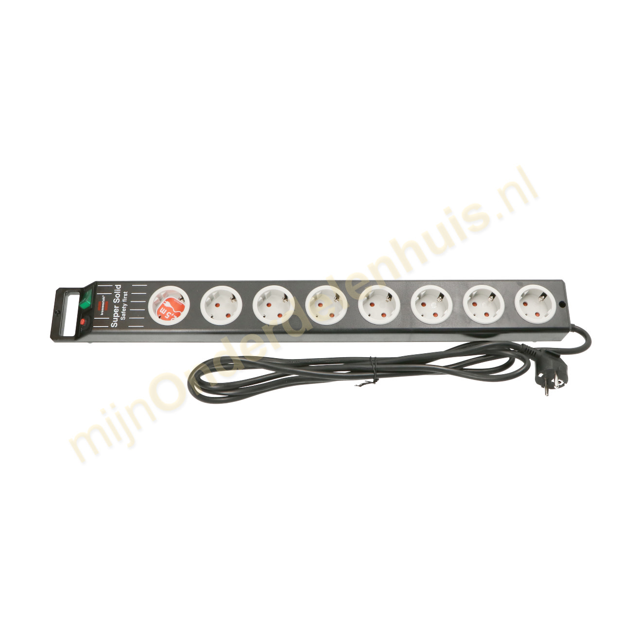 Heel stabiel geconstrueerde stekkerdoos uit breukvast polycarbonaat.
