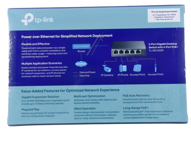 Specificaties van TP-Link 5 poort switch 1000Mbps met POE TL-SG1005P