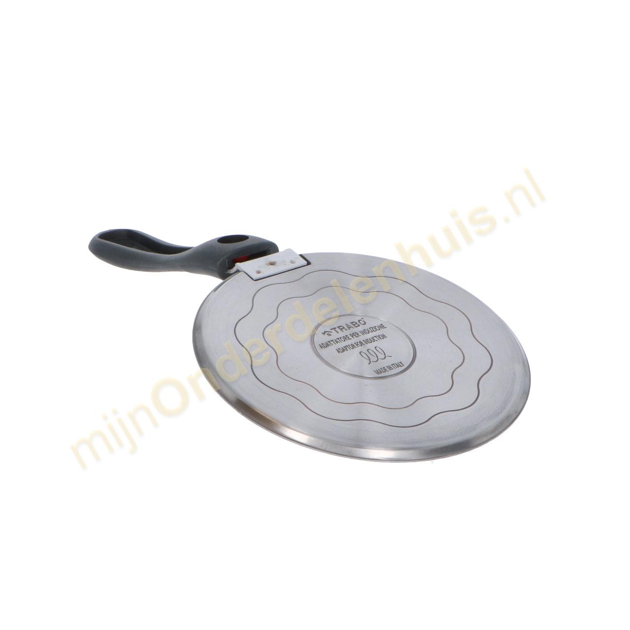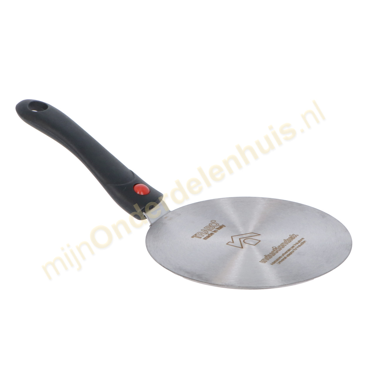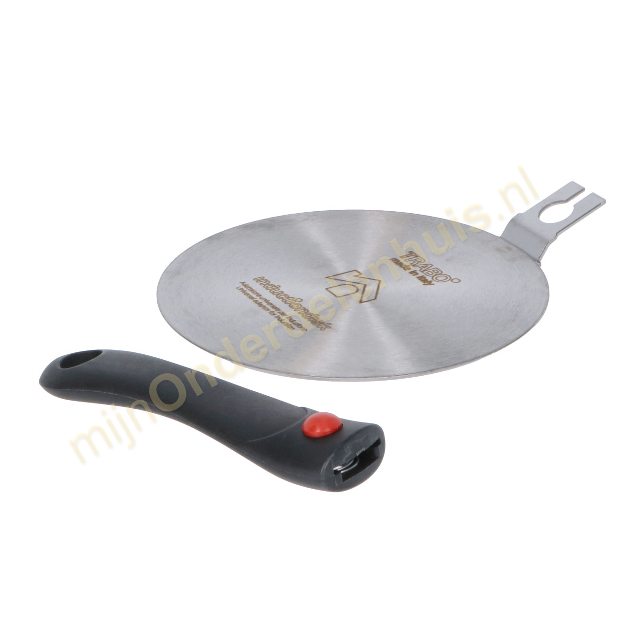 Inductiondisk van Trabo is een universele adapter waarmee gewone pannen, potten, kookpotten enz. op inductiekookplaten kunnen worden gebruikt. Het is een schijf van 6 mm dik AISI 430 roestvrij staal, die de warmte van de inductie overbrengt op het oude kookgerei. Inductiondisk is voorzien van een handig afneembaar handvat, is gemakkelijk schoon te maken en vaatwasmachinebestendig.