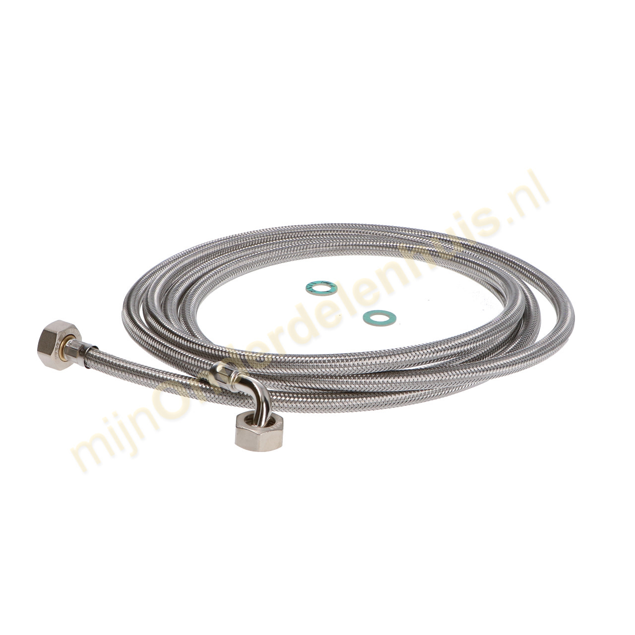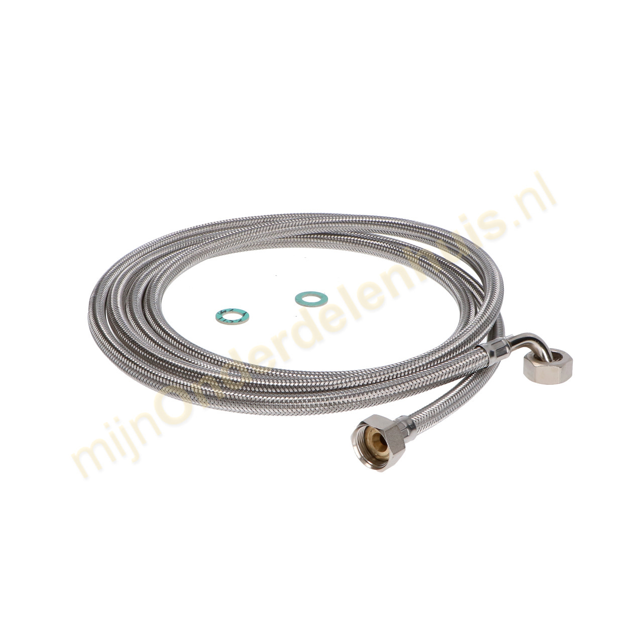Aanvoerslang metaal 3/4" recht - 3/4'' haaks 10bar 90°C 3,5m
