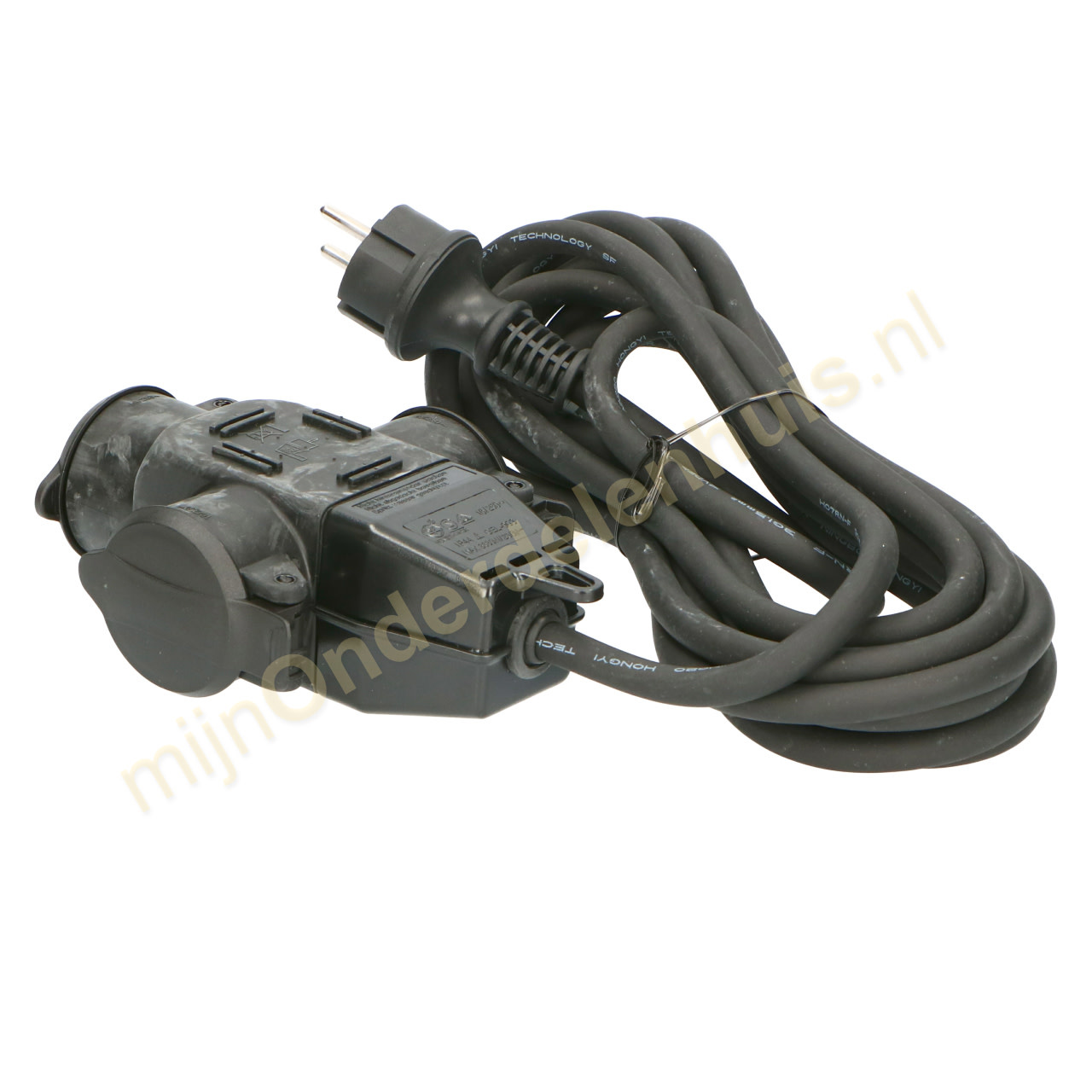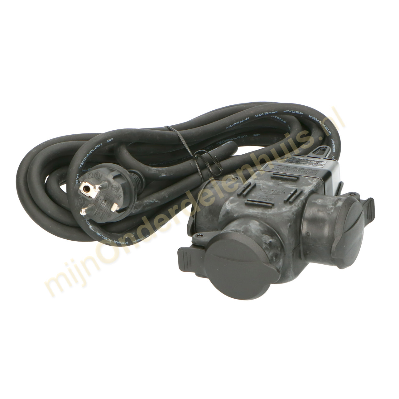 VB Verlengblok 3 voudig + RA 5 meter H07RN-F + klep, 3 x1.5mm2 + ophangoog, klapdeksels en maximaal belastbaar 3680 Watt.