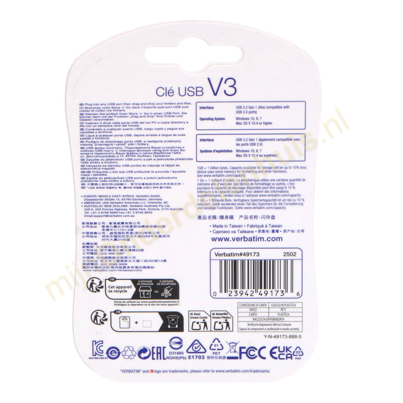 Het ontwerp van de V3 USB-stick waarborgt tevens dat de USB-connectors worden beschermd door middel van een 'slide and lock'-mechanisme. Dit vergrendelt de stick bij gebruik en schuift terug in een gesloten positie ter bescherming van de connector als de stick niet in gebruik is.