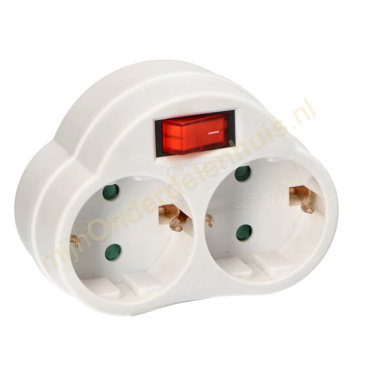 2-Voudige horizontale verdeelstekker met RA en schakelaar 250V max. 2300W