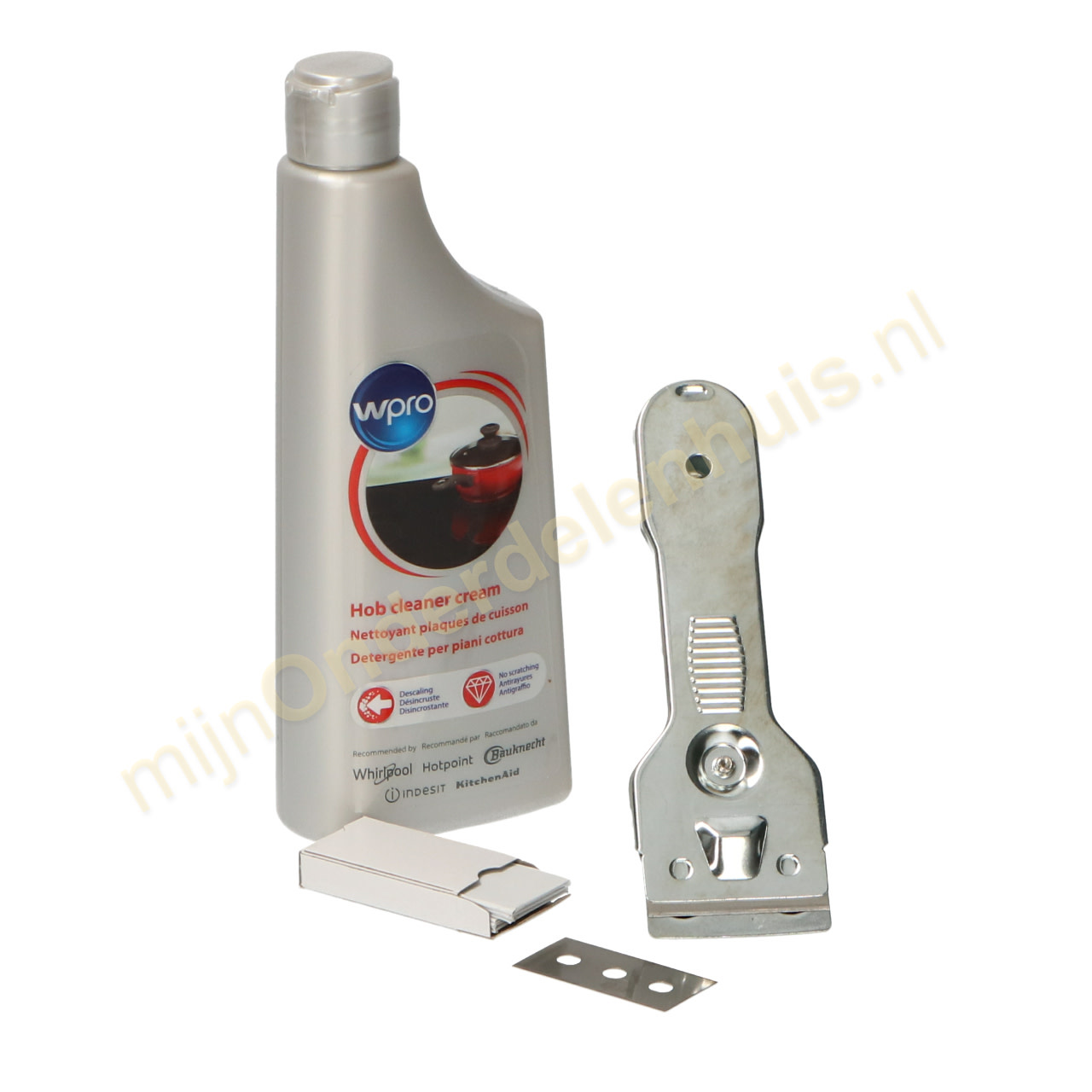 De reinigingscrème laat een beschermende laag achter zonder strepen. Met de schraper is het mogelijk om aangekoekte resten te verwijderen.