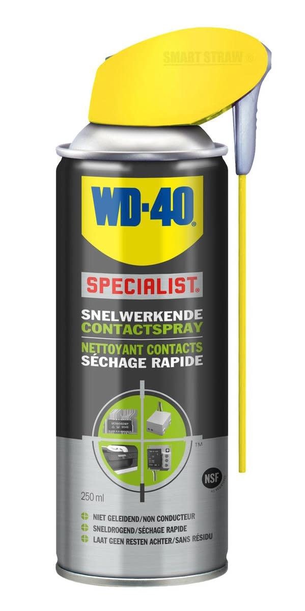 Hoe werkt de WD-40 Specialist Contactspray? De contactspray verwijdert snel en moeiteloos vuil, stof, condensatie en fluxresidu. Daarnaast dringt het snel door in moeilijk bereikbare plaatsen, en droogt het snel zonder residu achter te laten. Simpelweg spuiten en het product vervolgens laten drogen voordat je het stroom weer aanzet.