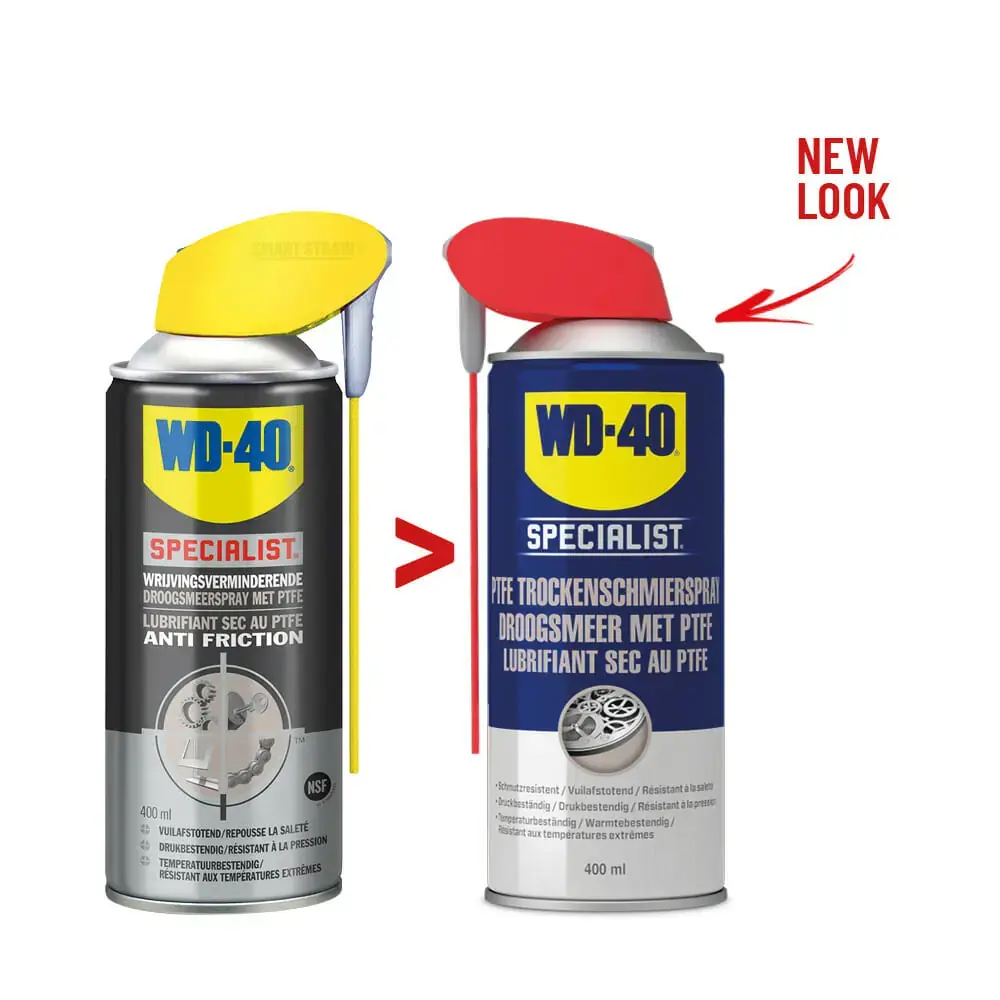 WD-40 Specialist Wrijvingsverminderende Droogsmeerspray met PTFE bevat PTFE wat voor een betere smering zorgt en een droge laag achterlaat die geen vuil, stof of olie aantrekt. De oplossing droogt snel en werkt wrijvingsverminderend, waardoor de levensduur van gereedschap of onderdelen wordt verlengt. Ook geschikt voor het ontvormen van producten uit een mal.