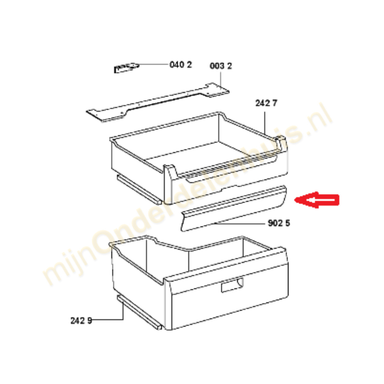 Afdekplaat van middelste of bovenste vrieslade