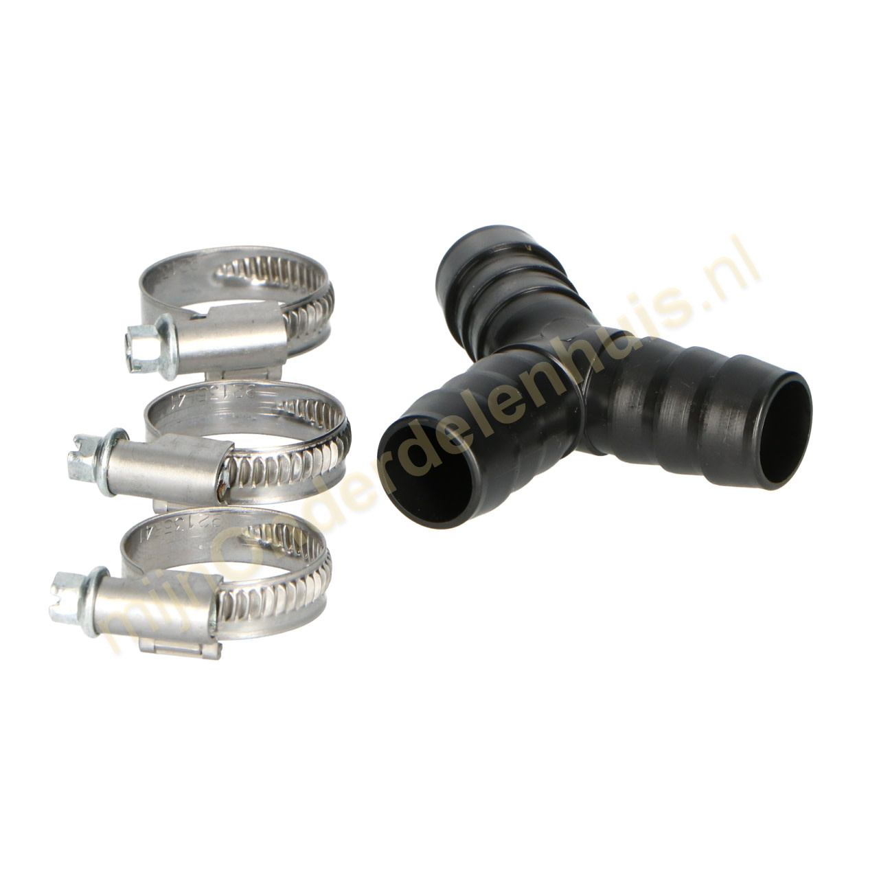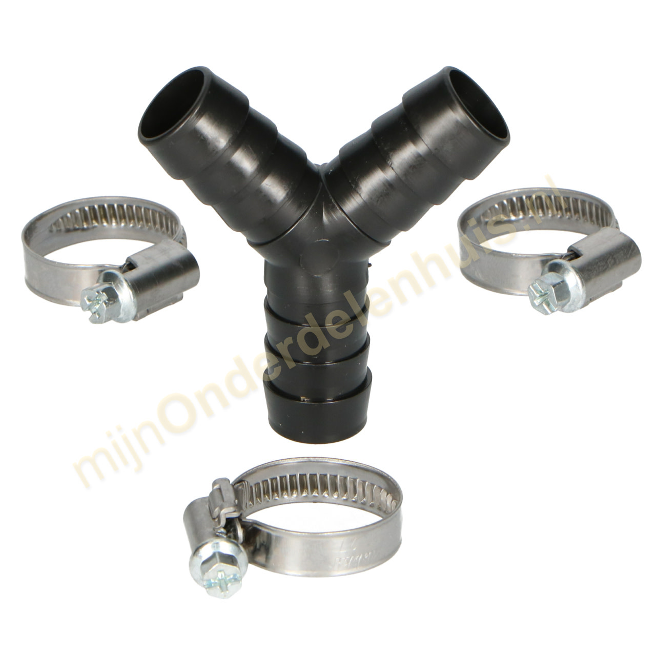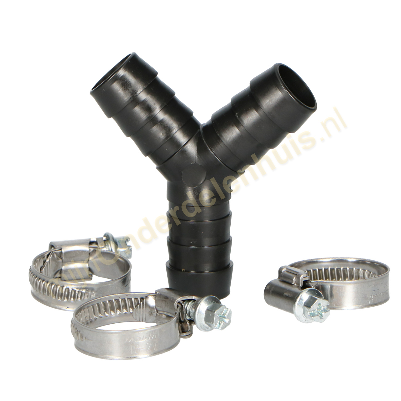 Y-model verbindingsstuk voor afvoerslangen + 3 slangklemmen