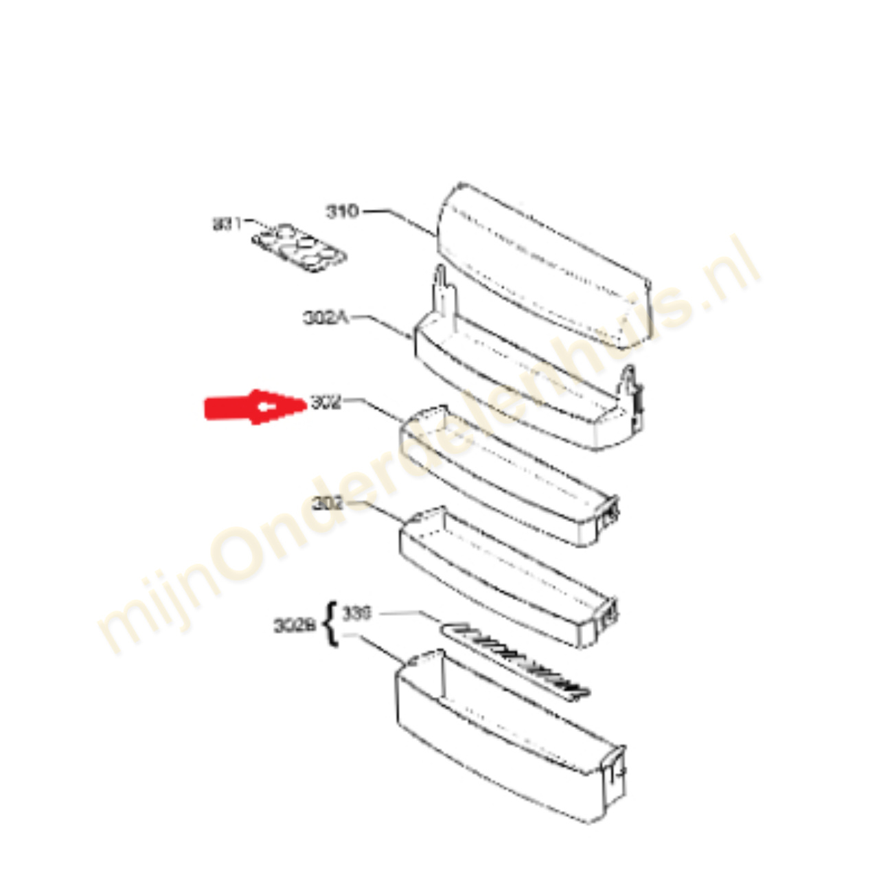 Zanussi flessenrek van koelkast 2246114108